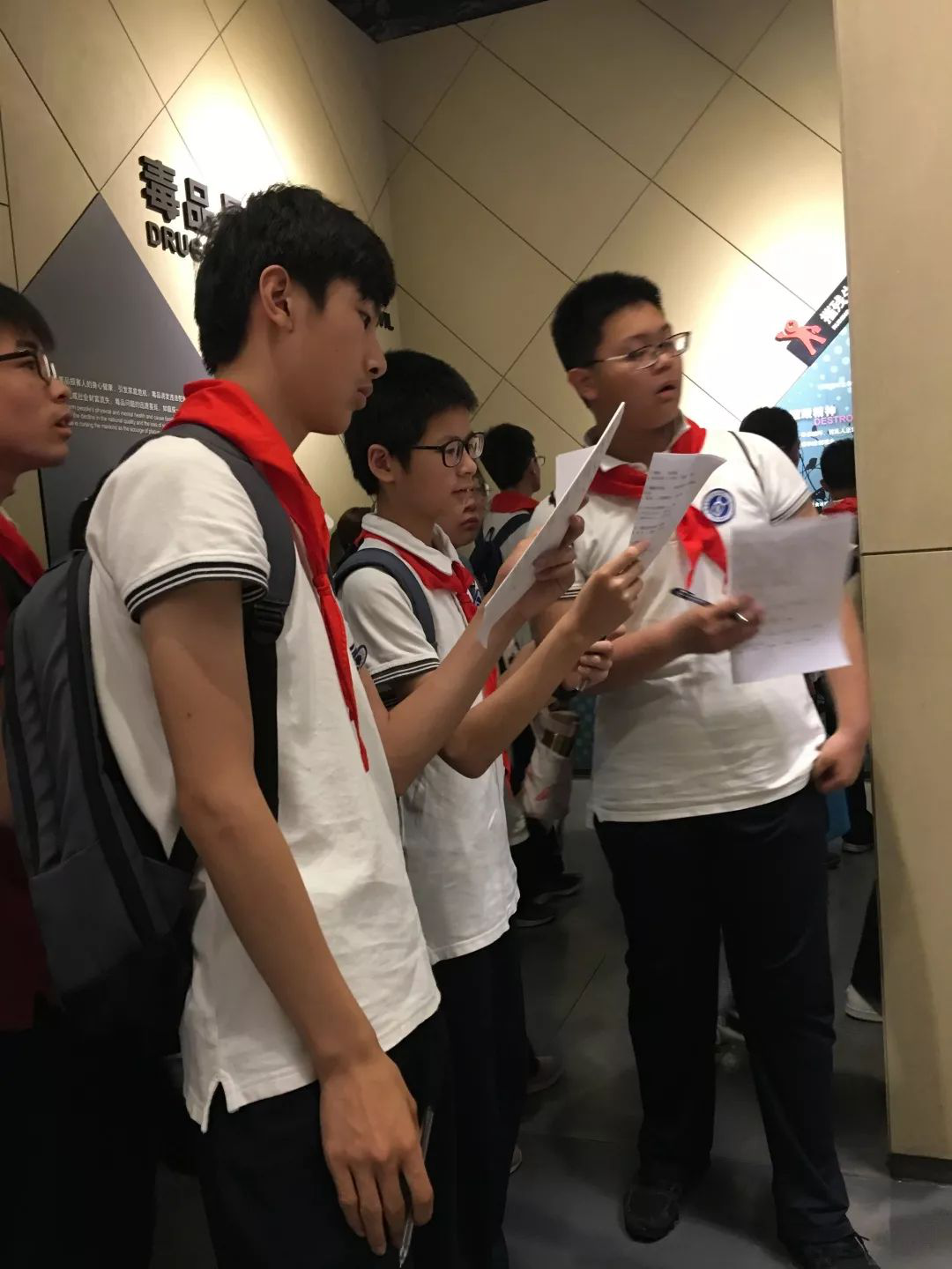 6月24日上午,我校组织初一年级学生参观上海市禁毒科普教育馆。带着一张“禁毒教育知识调查问卷”,学生们分小组,边参观边答题,积极踊跃参与各项活动,学习禁毒知识气氛浓郁,旨在完成“五个一”禁毒预防教育系列活动。