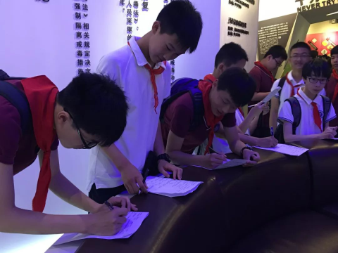 我校历来重视初中青春期学生禁毒教育,是上海市禁毒教育示范校。选择在6月26日国际禁毒日来临之际参观上海市禁毒科普教育馆,是特别提醒学生认识毒品,了解危害,自觉形成禁毒意识,尤其要认清新精神活性物质真面目,远离一切新型毒品,学会自我保护!