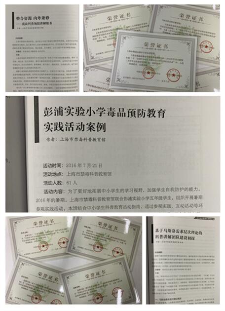 本馆原创案例、实践案例、创新案例入选《青少年法治教育案例汇编》,有本馆撰写的《上海久隆模范中学毒品预防教育实践活动案例》、《彭浦实验小学毒品预防教育实践活动案例》、《上海理工大学附属中学毒品预防教育实践活动案例》、本馆宣教员张琪撰写的《“青春无极限,志愿我现行”高中生社会实践》、本馆宣教员周颖撰写的《“向毒品说不”三进三送禁毒科普宣传活动》等等。