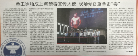 拳王徐灿成上海禁毒宣传大使 现场号召重拳击“毒”