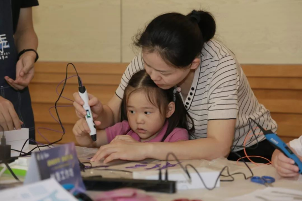 3D打印笔利用PCL塑料,可以在任何表面‘书写’,甚至可以直接在空气中作画。它基于3D打印,挤出热融的塑料,然后在空气中迅速冷却,最后固化成稳定的状态,赋予了您无尽的创造力。活动现场,市民们创意无穷,创作出各式形态的图案,有的家长说可以锻炼孩子的想象力,非常棒!