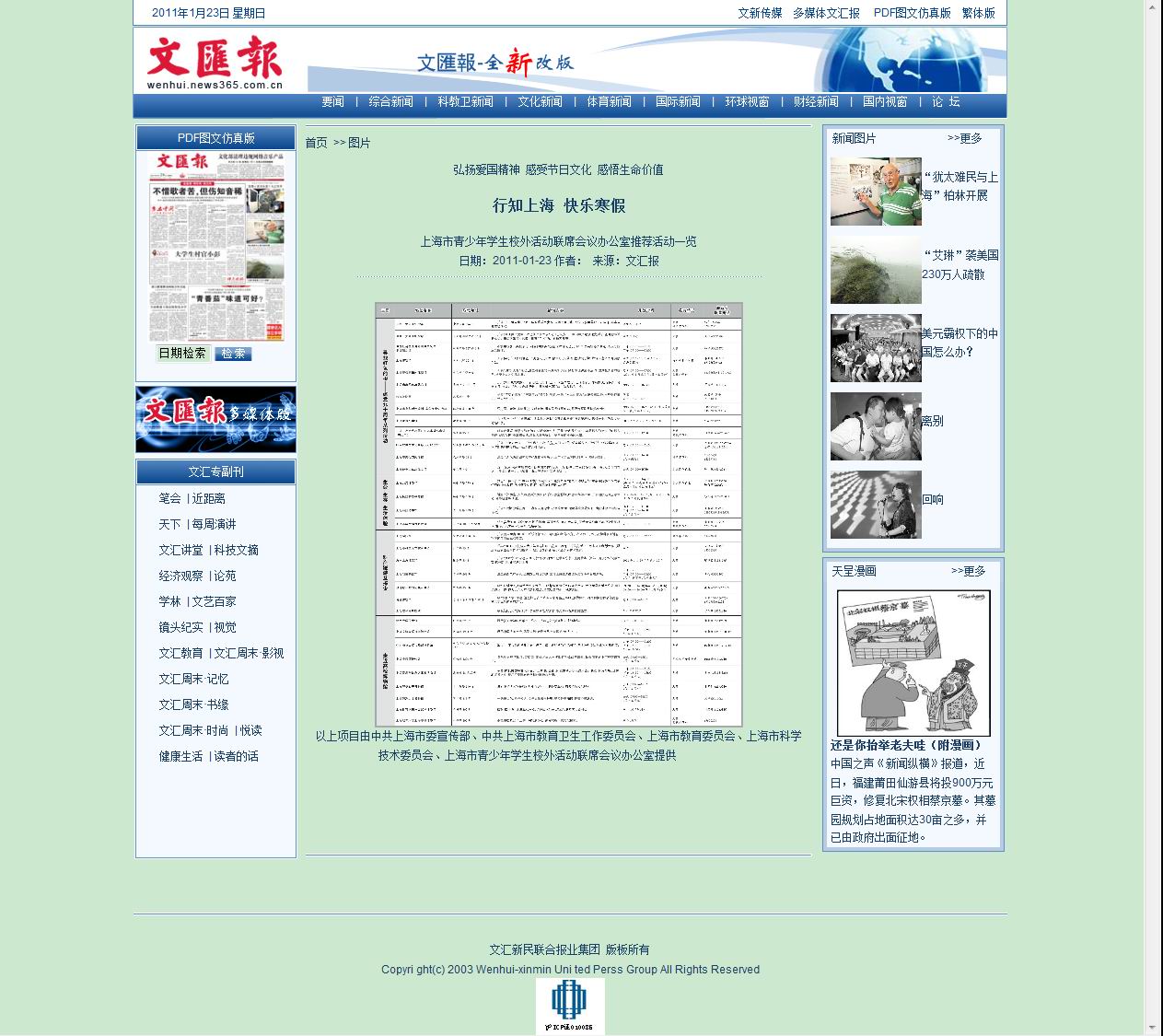 下一篇:新民晚报-寒假,别错过感受校外精彩生活 2011.1.24 (2011/1/24)