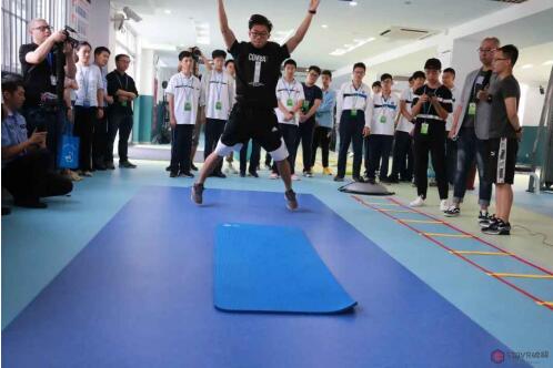 用运动成瘾机制替代吸毒成瘾机制,是高境戒毒所在探索运动康复戒毒中的一大重点。在参观过程中,同学们在上海体育学院的教练带领下,体验了一把康复恢复九式训练。戒毒所民警向同学们介绍说:“如今第三代新精神活性物质广泛传播,吸食这类合成毒品之后人员脑部神经损伤严重,这种协调性训练有健脑强心作用,可以用在合成毒品戒毒人员脑部神经修复以及生理、心理康复方面。同时,也让戒毒人员回归社会后养成终身运动的良好习惯。”