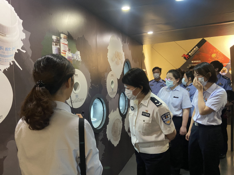 2020年6月30日,上海市公安局静安分局党委委员、副局长何陈男带领出入境办党支部一行15人来上海市禁毒科普教育馆开展“四史”学习教育活动。