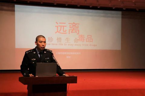 2021年4月30日,特邀上海市高境强制隔离戒毒所四级警长殷俊在上海市青少年活动中心多功能厅为华东师范大学光华书院禁毒志愿者主讲“公共安全必修课”,听讲人数40人。