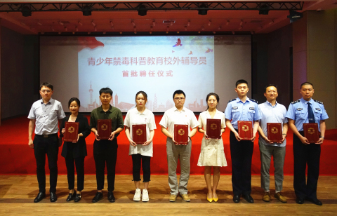 为首批“青少年禁毒科普教育校外辅导员”颁发聘书
