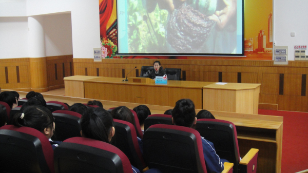 2012年3月30日下午,宣教员王以律在上海市振华外经职业技术学校主讲禁毒流动课堂,听讲人数330人。