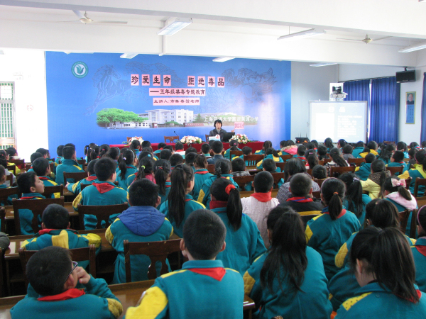 2012年3月14日,讲解员陈方在嘉定区黄渡小学主讲禁毒流动课堂,听讲人数220人。