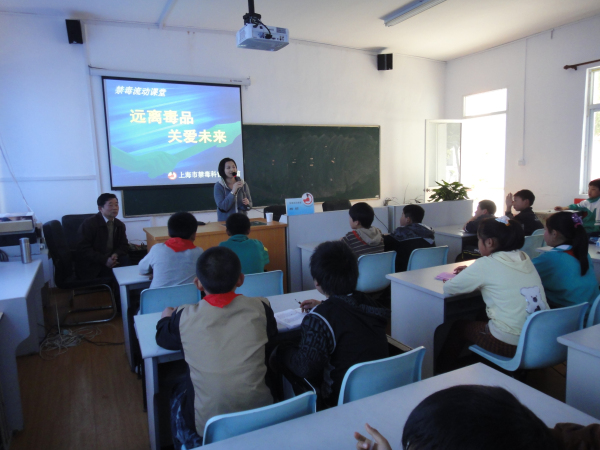 2012年4月10日,宣教员杨颖在嘉定区民办华武小学主讲禁毒流动课堂,听讲人数92人。