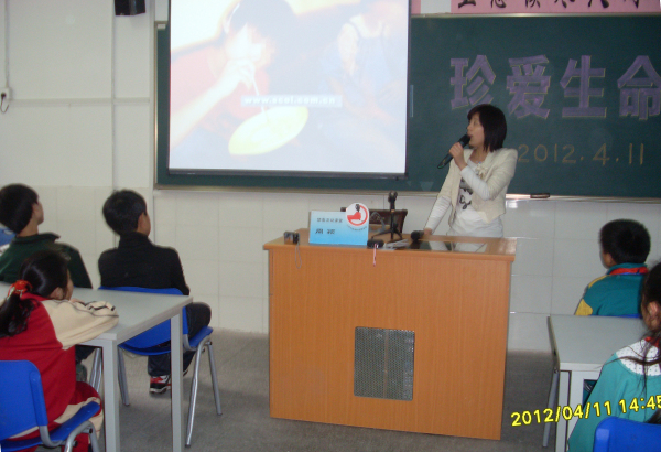 2012年4月11日下午,宣教员周颖在嘉定区江桥镇民办沪宁小学主讲禁毒流动课堂,听讲人数1150人。