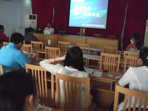 2012年9月21日,宣教部部长邓建业在奉贤区少年军校为教师进行禁毒知识的师资培训,听讲人数33人。