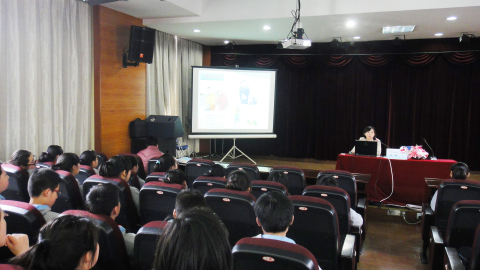 2014年3月28日,宣教员杨颖在上海市长桥中学主讲禁毒流动课堂,听讲人数167人。
