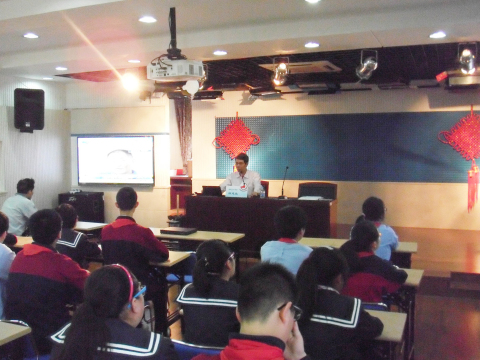 2014年5月13日,宣教部部长邓建业在上海市第五中学主讲禁毒流动课堂,听讲人数300人。