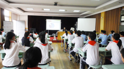 2014年9月19日,宣教员杨颖在上海市子长学校主讲禁毒流动课堂,听讲人数662人。