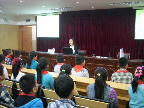 2014年10月15日,宣教员徐雯君在松江区上师大附属外国语小学主讲禁毒流动课堂,听讲人数586人。