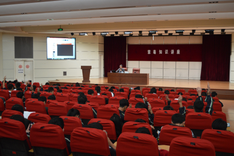 2014年10月28日,宣教部部长邓建业在上海市房地产学校主讲禁毒流动课堂,听讲人数320人。
