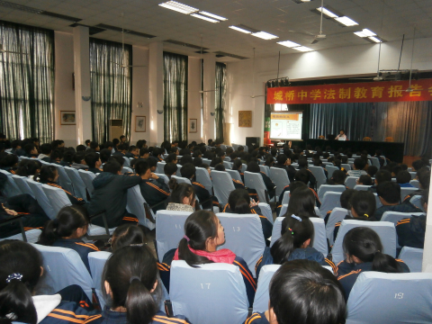 2014年12月1日,宣教员陈方在崇明县城桥中学主讲禁毒流动课堂,听讲人数315人。