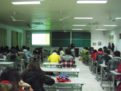 2014年12月10日,宣教部部长邓建业在上海对外经贸大学主讲禁毒流动课堂,听讲人数70人。