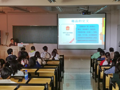 2015年5月13日,宣教员陈方在上海旅游高等专科学校主讲禁毒流动课堂,听讲人数110人。