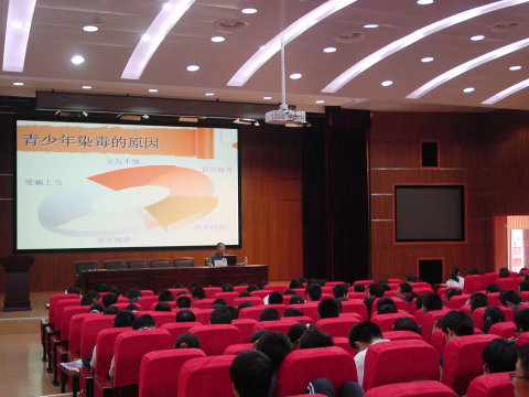 2015年5月25日,宣教部部长邓建业在上海市宝山区海滨中学主讲禁毒流动课堂,听讲人数210人。