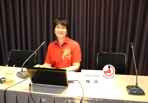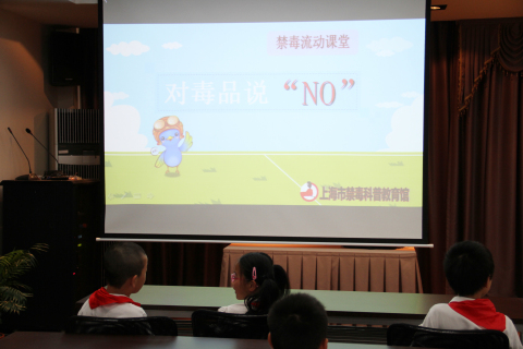 2015年6月15日,宣教员陈方在上海市民办阳浦小学主讲禁毒流动课堂,听讲人数200人。