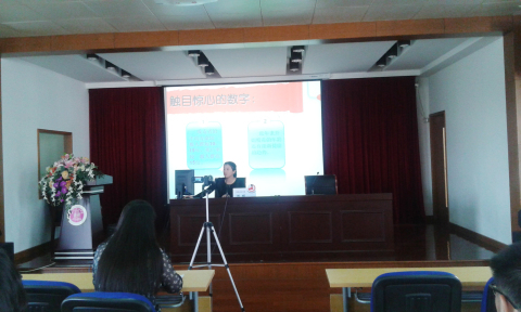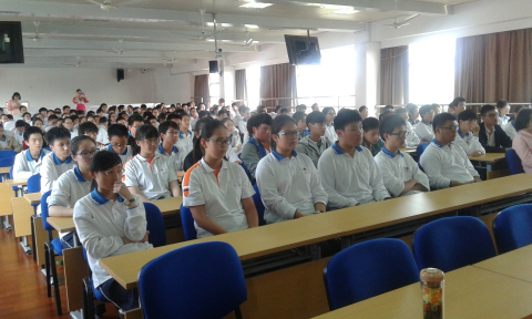 2015年10月16日,宣教员周颖在上海财经大学附属中学主讲禁毒流动课堂,听讲人数210人。