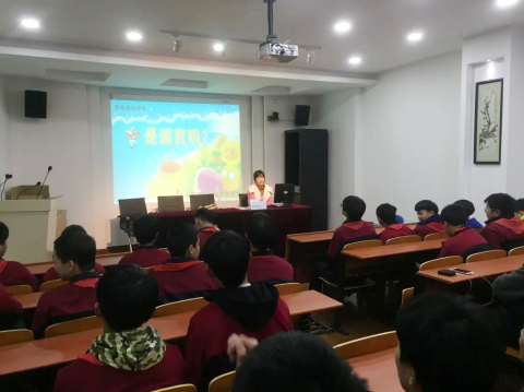 大麻烟、摇头丸、止咳水……这些名词虽然经常会在生活中听到,但这些知识对我们青少年小朋友来说却是似懂非懂,知之甚少。2016年元月8日,上海市禁毒科普教育馆禁毒宣讲走进虹口区的广中学校,为该校的初中学生讲解这些毒品的原理,普及禁毒的科普知识,“这些是谣言吗”为主题的讲座是以青少年吸毒现状为导入,通过“全民寻找房祖名”互动游戏、柯震东吸毒忏悔视频实录等名星涉毒事件的热点为警示,告诫同学们如何抵制“吸毒可以减肥、吸毒可以提高学习成绩、吸毒不会上瘾”等谎言。授课老师运用PPT为形式的宣讲手段,让大家在观看案例的图文视频和现场的知识问答互动,使同学们在深入浅出中知晓毒品的种类和识别毒品的方法,了解和防范新型毒品的侵害,在面对别人的诱惑时该如何拒绝毒诱。