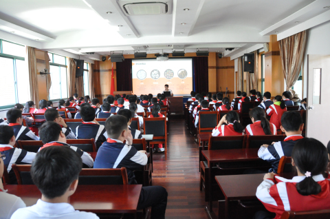 2016年5月16日,宣教员张圣琪在上海市辽阳中学主讲禁毒流动课堂,听讲人数600人。