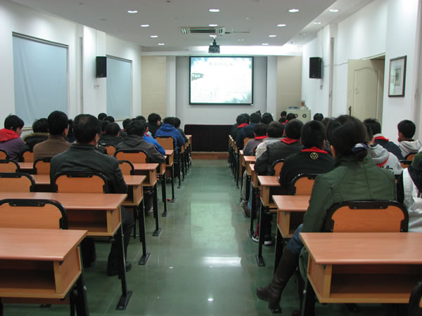 | 2010年4月13日,宣教员王以律在虹口区广中学校主讲“珍爱生命,远离毒品”的禁毒流动课堂,听讲师生65人。 |