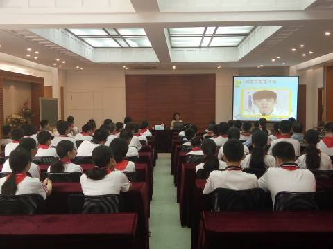 2016年9月26日,宣教员张琪在上海市黄浦区教育学院附属中山学校主讲禁毒流动课堂,听讲人数80人。