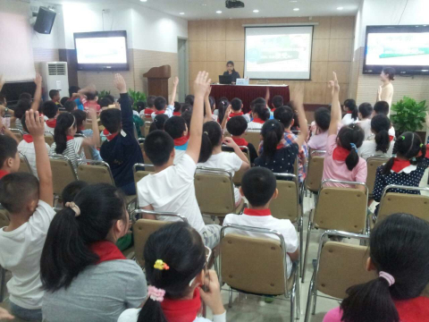 2016年9月30日,宣教员王伟珠在上海市黄浦区四川南路小学主讲禁毒流动课堂,听讲人数116人。