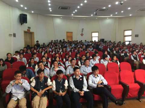2016年10月14日,宣教部部长邓建业在上海市民立中学主讲禁毒流动课堂,听讲人数175人。