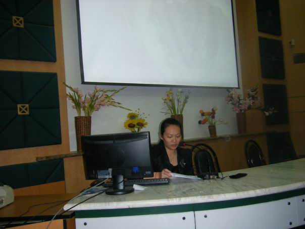 2010年10月19日,讲解员朱晓蓓在宝山区刘行中学主讲禁毒流动课堂,听讲人数280余人。