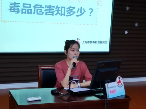 2017年6月12日,见习宣教员蔡婉舒在上海市实验学校附属小学主讲禁毒流动课堂,听讲人数1052人。