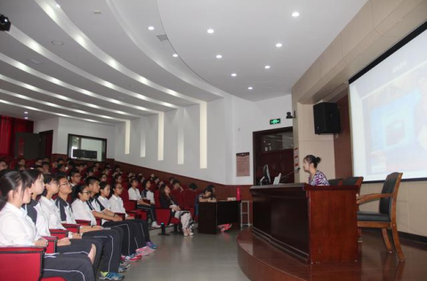 2017年6月22日,宣教员王伟珠在上海市南洋中学主讲禁毒流动课堂,听讲人数690人。