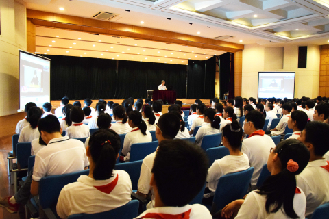 2017年6月27日,宣教部部长邓建业在上海市南洋模范初级中学主讲禁毒流动课堂,听讲人数450人。
