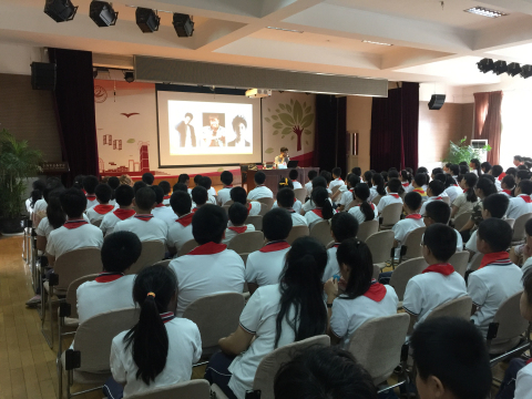 2017年8月30日,宣教员张圣琪在上海市省吾中学主讲禁毒流动课堂,听讲人数300人。