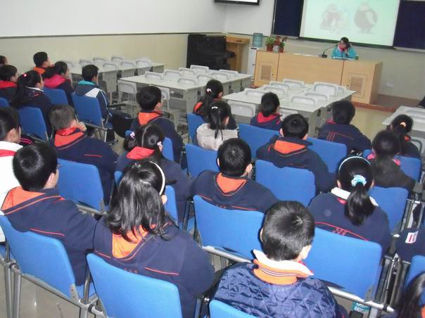 2011年2月28日上午,讲解员朱晓蓓在徐汇区建襄小学主讲禁毒流动课堂,听讲师生720人。
