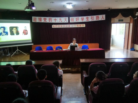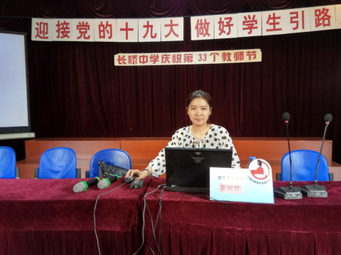 2017年9月15日,宣教员蔡婉舒在上海市长桥中学主讲禁毒流动课堂,听讲人数150人。