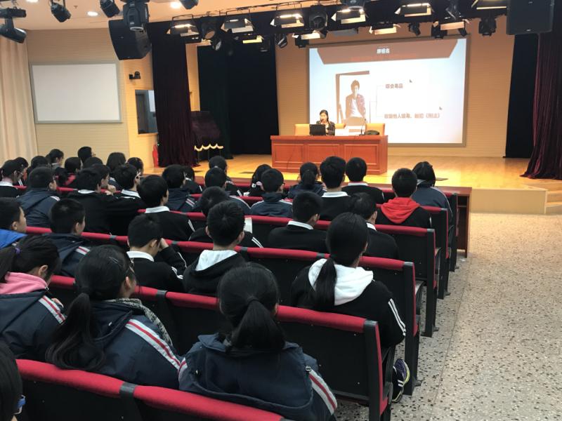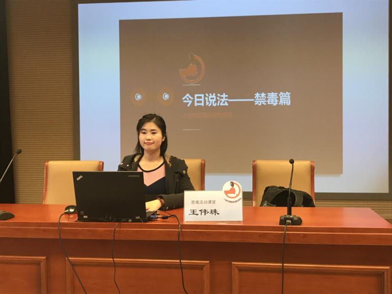2017年12月1日,宣教员王伟珠在上海市杨浦高级中学主讲禁毒流动课堂,听讲人数370人。