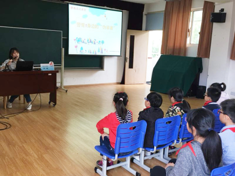 2018年5月11日,宣教员周婕在上海市黄浦区中华路第三小学主讲禁毒流毒课堂,听讲人数120人。