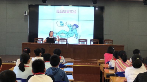 2018年5月18日,特邀上海市自强社会服务总社总干事助理曹霞在上海市黄浦区梅溪小学主讲禁毒流动课堂,听讲人数120人。