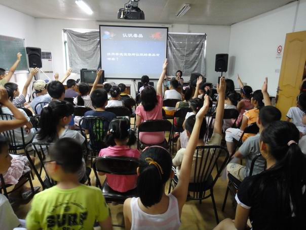 2011年7月13日上午,讲解员杨颖在闵行区漕宝路居委会社区学校主讲禁毒流动课堂,以ppt、卡通漫画等形式生动地讲述了毒品的危害,深受青少年的欢迎。听讲人数44名。