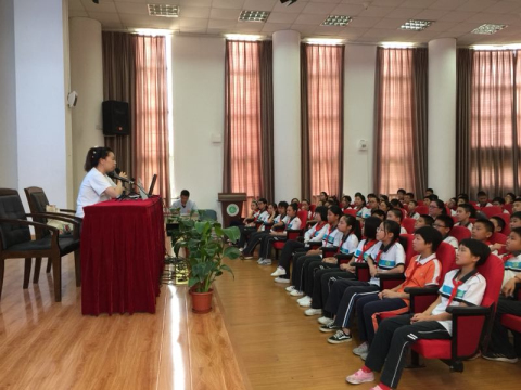 2018年9月3日,宣教员周婕在上海市钟山初级中学主讲禁毒流动课堂,听讲人数153人。
