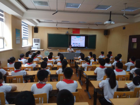 2018年9月17日,宣教员王伟珠在上海市杨浦区同济小学主讲禁毒流动课堂,听讲人数800人。