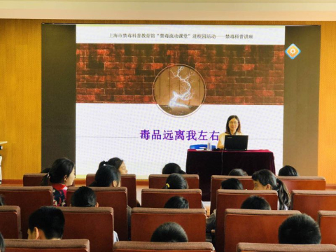 2018年9月28日,特邀上海市自强社会服务总社督导主任曹霞在上海市东辽阳中学主讲禁毒流动课堂,听讲人数225人。