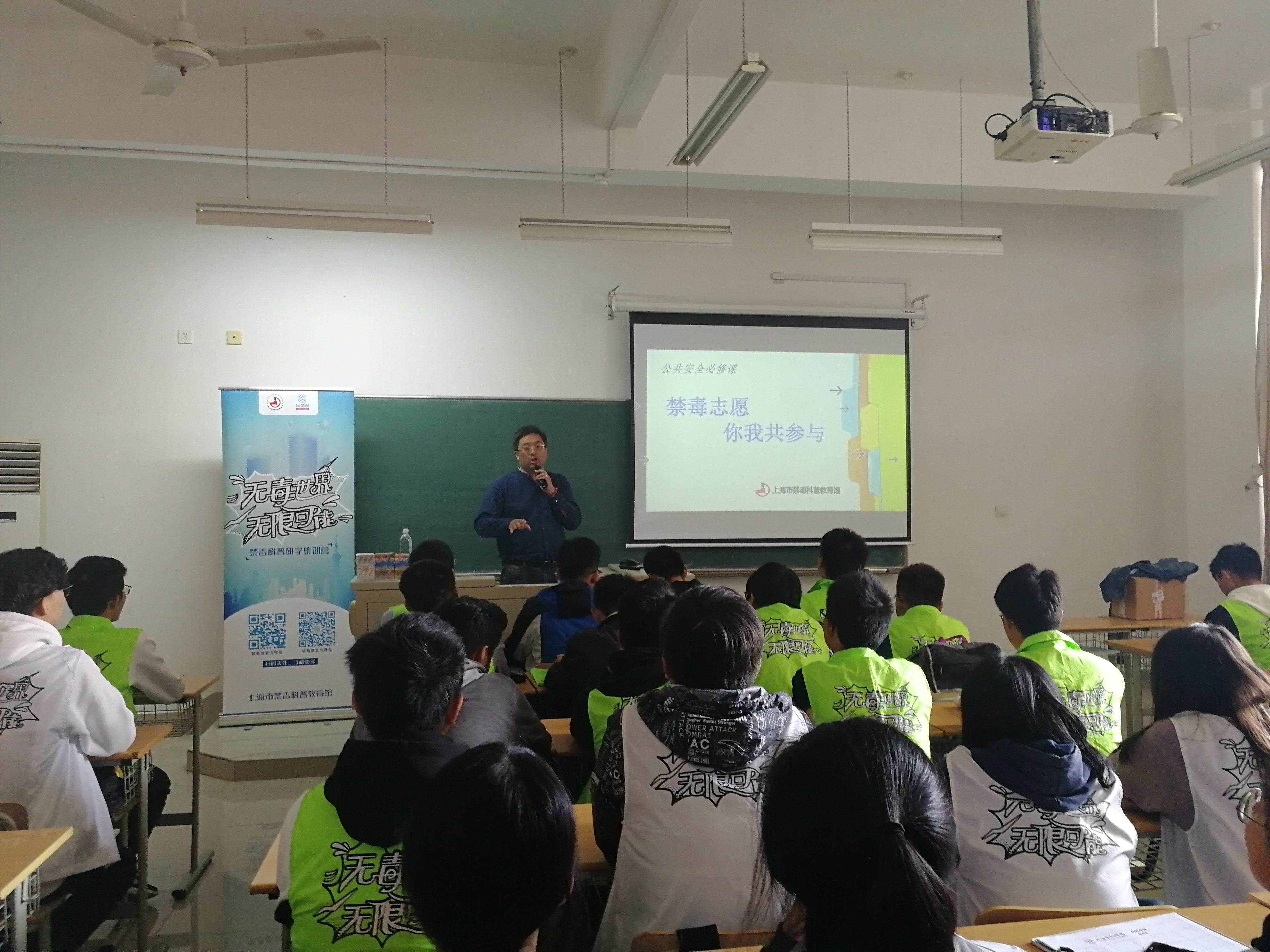 2019年11月1日,特邀上海市禁毒志愿者协会副秘书长乔坚在上海电机学院主讲“公共安全必修课”,听讲人数约69人。