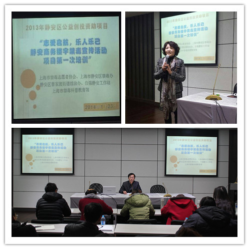 2014年1月23日由上海市禁毒志愿者协会、上海市静安区禁毒办、上海市静安区曹家渡街道综治办、上海市自强社会服务总社静安工作站、上海市禁毒科普教育馆等单位主办的“志爱启航,乐人乐己”静安商务楼宇禁毒宣传活动项目第一次培训会议在静安区精神卫生中心召开。