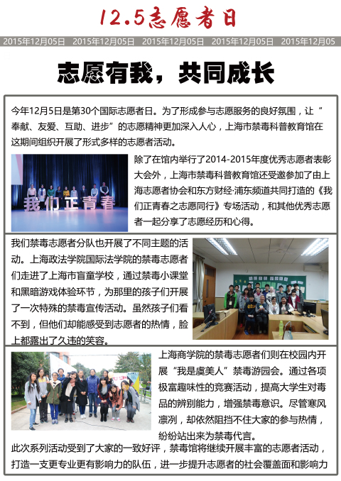 上一篇:“青春•无毒•无悔”——华东师范大学禁毒公益分享会 (2015/11/24)