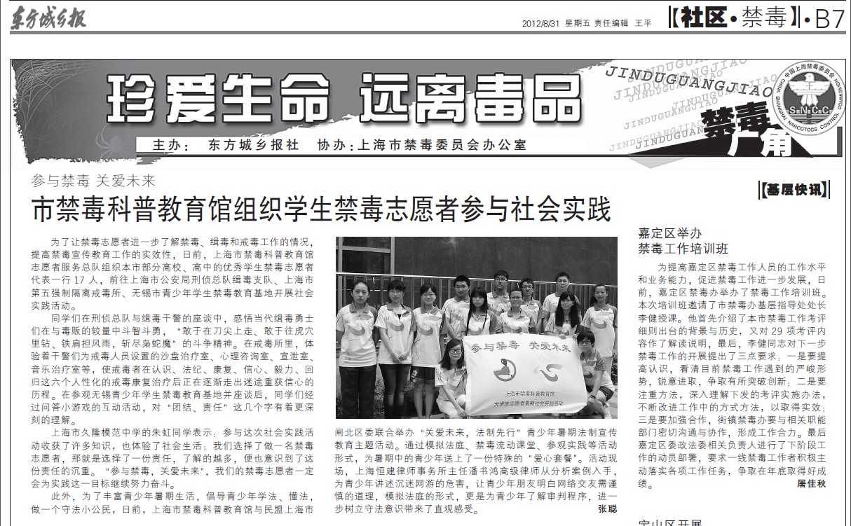 下一篇:2012中国禁毒志愿者汽车万里行上海站活动在本市长宁区、徐汇区举行——带动全市掀起禁毒宣传… (2012/9/6)